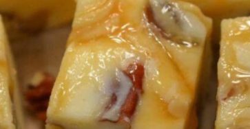 Here’s a simple recipe that matches the dessert in the photo — it’s a Caramel Pecan White Chocolate Fudge (no…