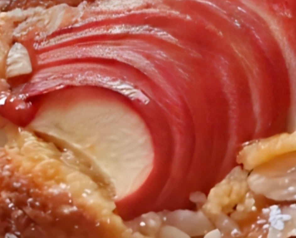 - Add apple slices: Arrange the thin apple slices on top of the almond filling in a circular pattern. Press them gently into the filling.