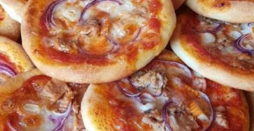 Here is a perfect mini-pizza recipe just like the ones in your pictures — soft, fluffy dough with tuna, cheese,…