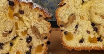 Here’s a complete recipe inspired by the photo — it shows two parts:a soft Italian-style sweet bread (panettone-like) with dried…