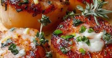 Here’s the complete recipe for Pan-Seared Scallops in Garlic Herb Cream Sauce: Description Tender, golden-browned scallops served in a rich and…