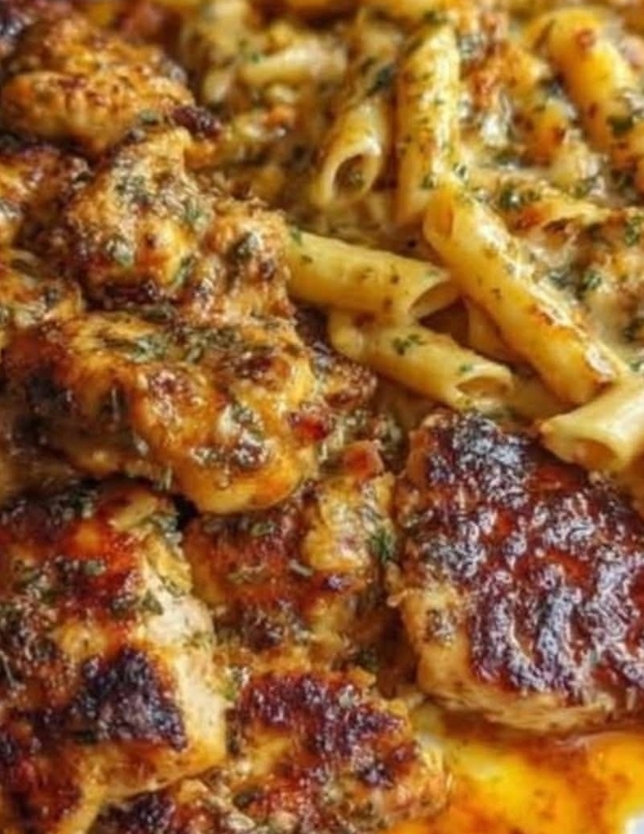 In a large skillet, heat olive oil over medium heat. Add chicken pieces, season with salt, pepper, paprika, and Italian seasoning. Cook until golden brown and cooked through. Remove chicken from skillet and set aside.