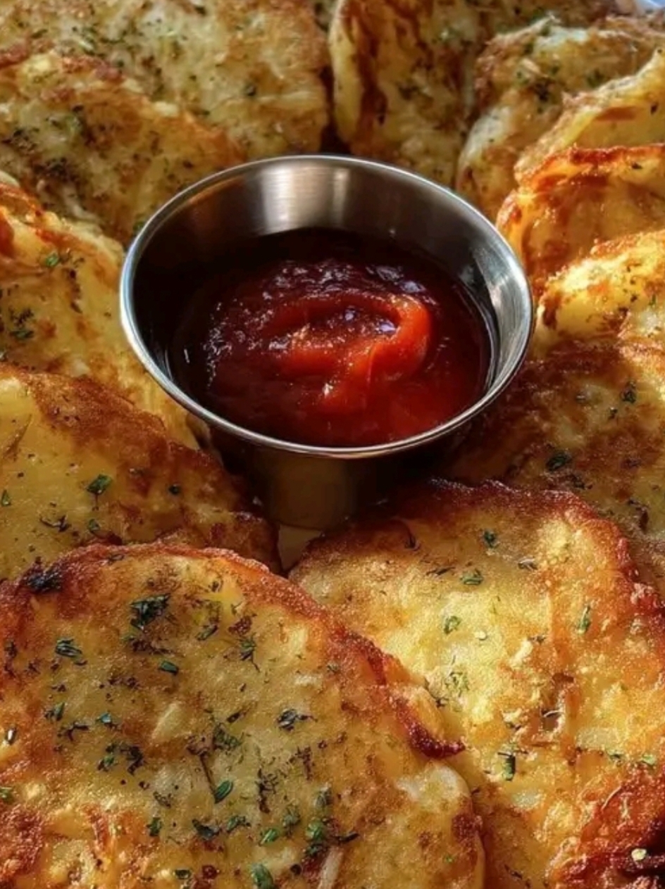 The potato pancakes have a crispy exterior and a tender interior. The recipe uses basic, pantry-staple ingredients. The cooking process is straightforward and results in a versatile side dish or appetizer.