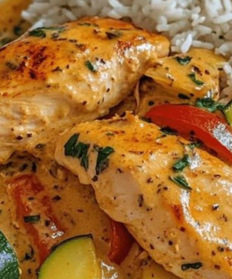 🍗 Creamy Paprika Chicken with Zucchini & Rice