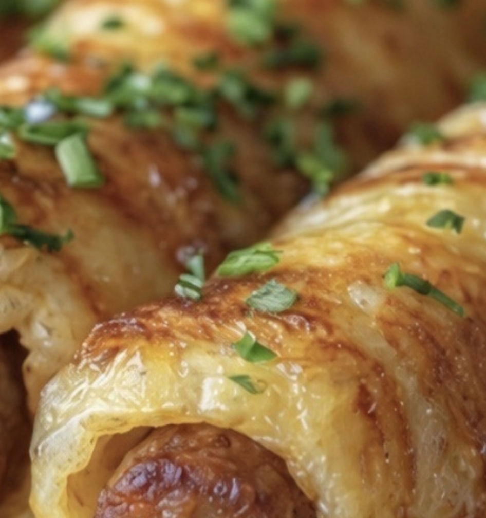 Ohhh yes 😍 those look like crispy sausage rolls wrapped in thin dough (crepes or pastry). Here’s a simple, foolproof recipe to get exactly that golden, juicy result.🥖 Crispy Sausage Rolls (Pan-Fried or Baked)🛒 Ingredients (serves 4–6)For the rolls8–10 sausages (beef, chicken, or turkey)8–10 thin crepes or spring-roll wrappers or thin pastry sheets2 tbsp melted butter or olive oil1 egg (for brushing, optional)Optional seasoning (extra flavor)½ tsp garlic powder½ tsp paprikaBlack pepper to tasteFresh chopped parsley or chives (for garnish)🔪 Instructions1️⃣ Prepare the sausagesIf sausages are raw, pan-sear them lightly for 4–5 minutes until just golden (not fully cooked).Let them cool slightly.2️⃣ WrapPlace one sausage at the edge of a crepe or wrapper.Roll tightly like a cigar 🌯Brush the edge with a little egg or water to seal.🔥 Cooking Methods🥘 Pan-Fried (like the photo – BEST texture)Heat a non-stick pan with a little butter or oilCook rolls on medium heat, turning gentlyFry until deep golden and crispy on all sides (6–8 minutes)🔥 Oven-Baked (lighter option)Preheat oven to 190°C (375°F)Place rolls on a baking trayBrush with melted butter or eggBake 18–22 minutes, turning once✨ Serving IdeasSprinkle with fresh parsley or chivesServe with:Garlic yogurt sauceMustard or honey mustardCheese dip 🧀💡 Pro TipsUse very thin crepes for that tight, glossy wrapDon’t overcrowd the pan—crispy needs spaceWant cheesy? Add a thin slice of cheese before rolling 🤫