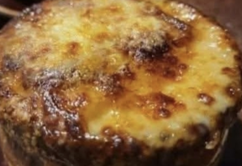 A comforting, indulgent classic. This slow-cooked onion soup is rich in flavor, topped with melted cheese and a golden, crispy crust. Perfect for cozy evenings or a special treat.