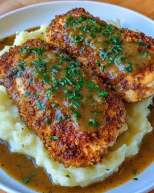 In the heart of the Midwest, where the fields stretch wide and the air carries the scent of earth and harvest, there’s a tradition of hearty meals that warm the soul. This slow cooker herb-crusted chicken fillets with creamy mashed potatoes is a dish that brings together the rustic charm of farm life with the comforting flavors of home. It’s a recipe passed down through generations, perfect for those who seek the simplicity and richness of a meal that speaks of family gatherings and Sunday dinners. The slow cooker does the heavy lifting, allowing the flavors to meld beautifully, while the mashed potatoes provide a creamy base that soaks up every bit of the savory gravy. It’s a dish that invites you to sit down, take a moment, and savor the warmth of a home-cooked meal.