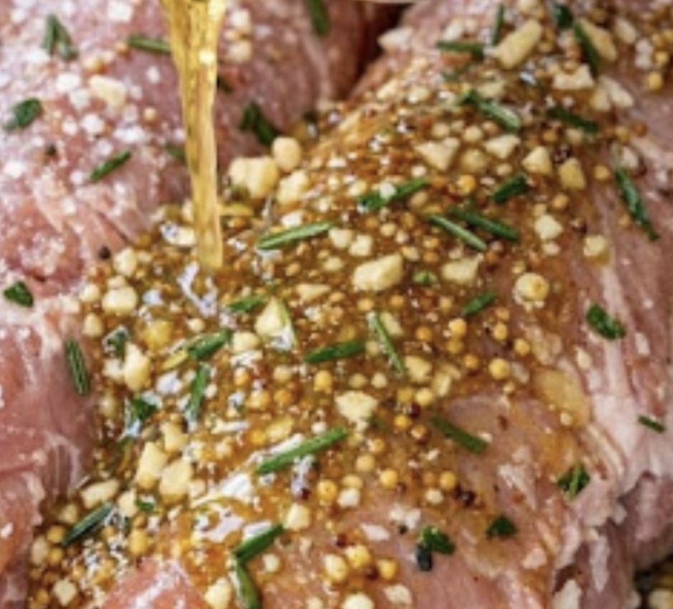 Here’s a simple, delicious recipe that matches the image — Garlic-Herb Marinated Pork Tenderloin (or Pork Loin).