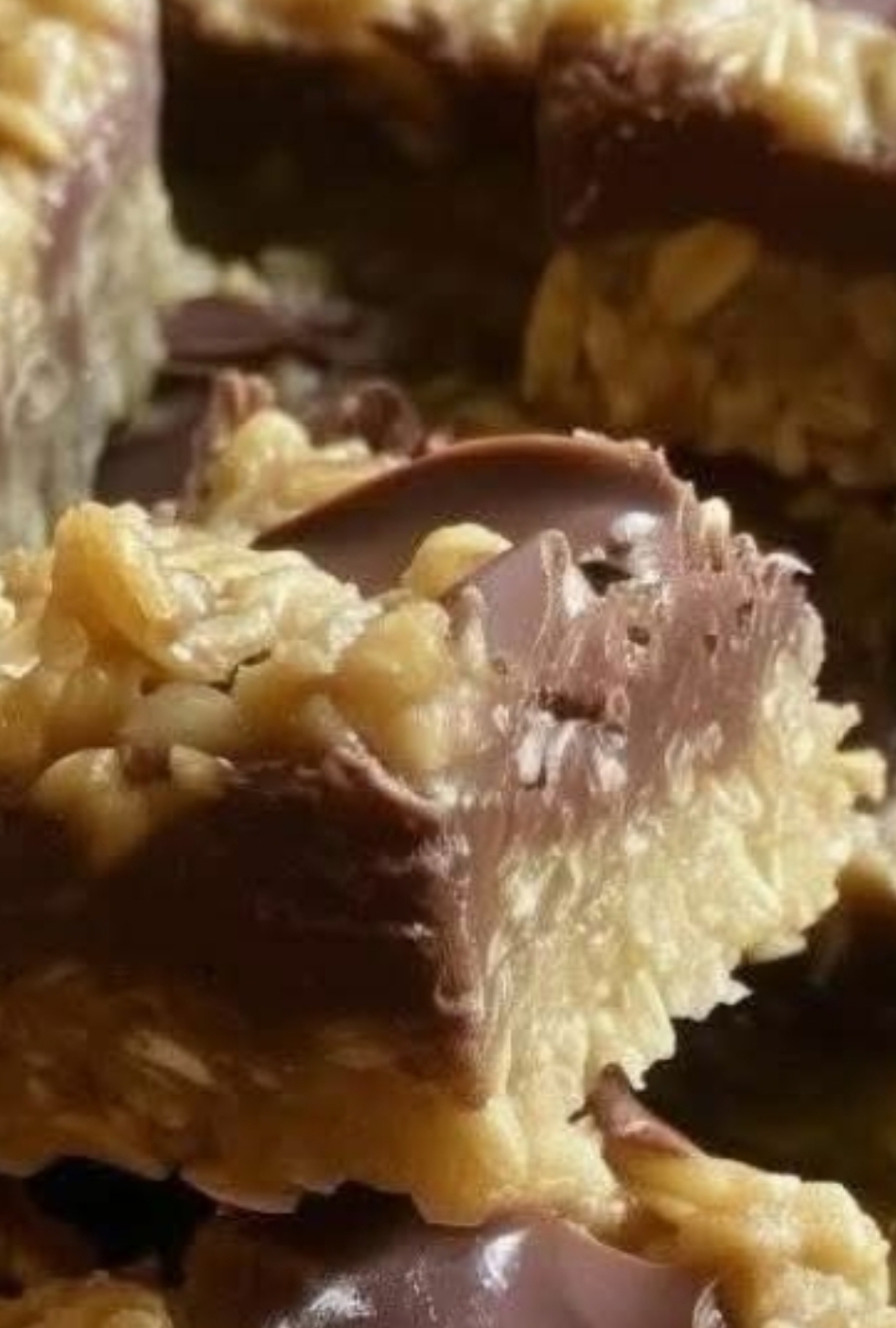 Crumble the remaining oat mixture over the chocolate layer, pressing in gently.