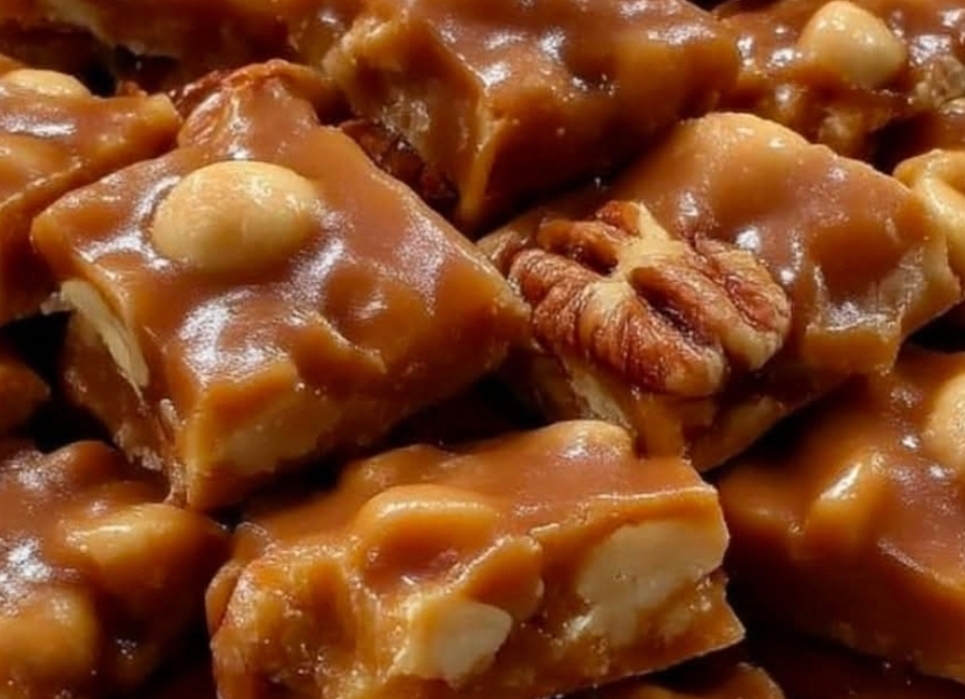 Pour the caramel and nut mixture into the prepared pan, spreading it evenly. Let it cool at room temperature for 1-2 hours until it begins to set, then refrigerate for an additional 1-2 hours or until fully set. - Cut and Serve: