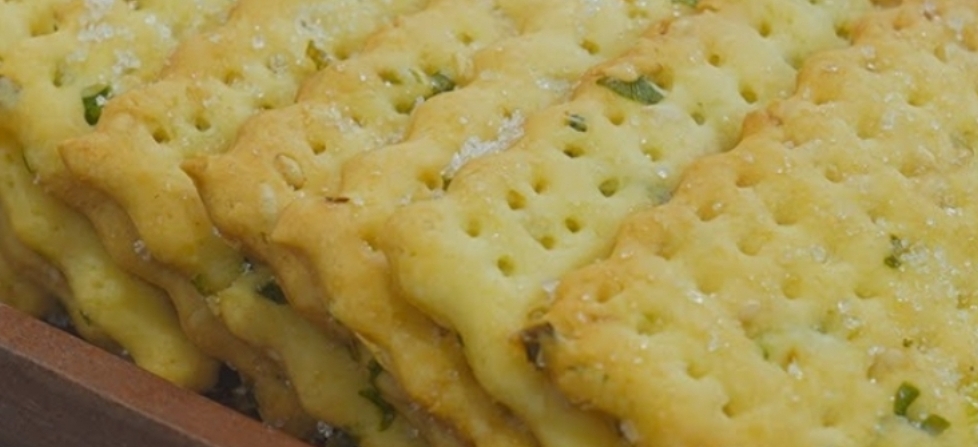 Here is a simple and delicious recipe for the crispy savory garlic–parsley crackers shown in the image!