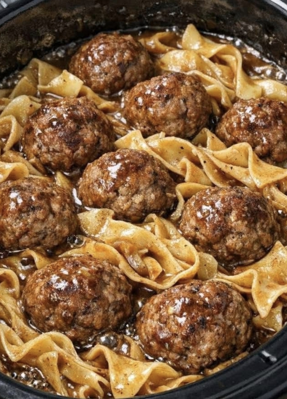 Slow-Cooked Meatball Stroganoff with Noodles is a rich, comforting dish made with tender meatballs simmered slowly in a savory mushroom and beef gravy. The slow cooker allows the flavors to develop beautifully while keeping the meatballs juicy and soft. Served over warm egg noodles, this dish delivers creamy, hearty comfort food that is perfect for family dinners, cozy weekends, or easy meal prep.