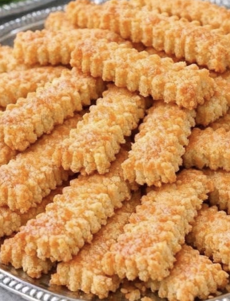 Southern 4-Ingredient Cheddar Cheese Straws are a quintessential hostess gift and party staple, known for their sharp cheesy bite and distinctive ridged shape. As shown in your image, these straws are baked to a perfect golden-orange hue with a crisp, crumbly texture that makes them an addictive savory snack.