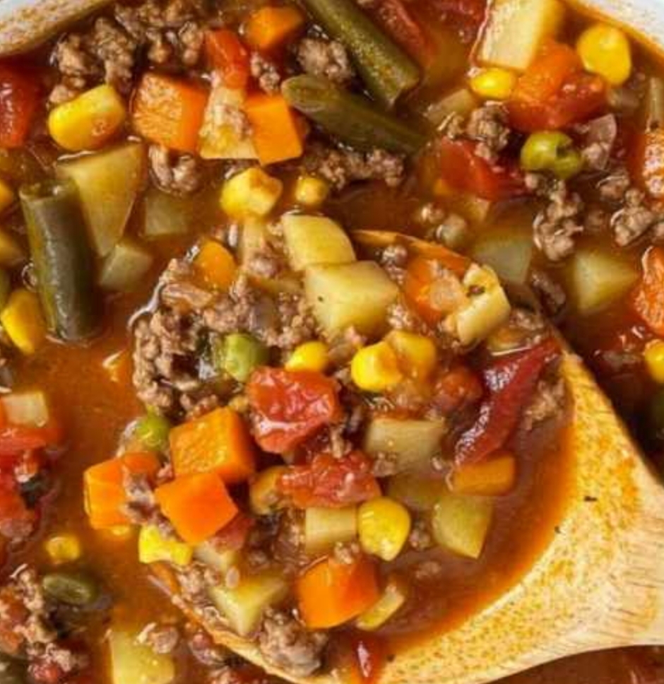 Stir the carrots celery and onions into the mince; Cook and stir until the vegetables are soft about 5 minutes. Add potatoes tomato sauce ground whole tomatoes non-rainy peas corn and green beans to the pot; Season with black pepper. Stir the mixture until evenly mixed. Adding thyme also bay leaf to the pot. Pour 1/4 cup of water over the mixture if necessary to moisturize the mixture renewing as needed during cooking.