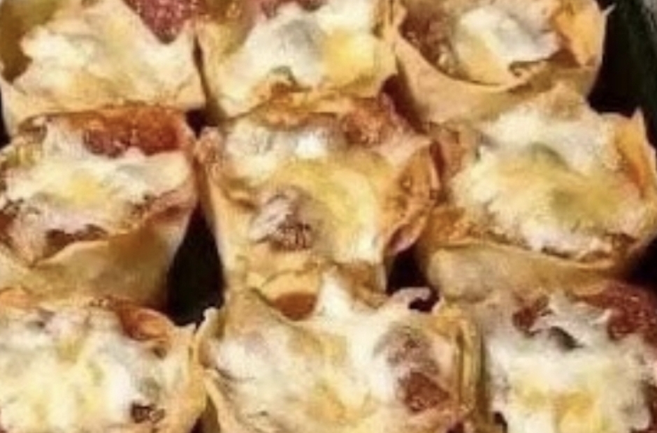 Bake in the preheated oven for 12–15 minutes, or until the edges of the wonton wrappers are golden and the cheese is melted and bubbly.